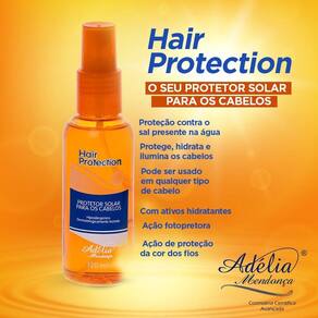 Hair Protection além de proteger contra a radiação solar, sua ação hidratante reestrutura as fibras e, por ser siliconado, também atua como excelente reparador de pontas. Sua fórmula permite a formação de uma barreira de proteção contra o sal presente na água. Pode também ser usado com prancha antes e depois da escova. O uso contínuo proporciona hidratação, maciez e melhora a textura do fio.
