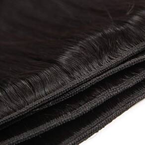 - 3. Cabelo liso cor e peso: cor preta natural, cabelo humano brasileiro cerca de 65 g ~ 70 g/pacote, 3 mechas de cabelo humano/pacote. Normalmente, 3 mechas e fecho de cabelo humano liso são suficientes para fazer um cabelo completo; o cabelo mais longo parecerá mais fino do que o cabelo curto, então geralmente precisa de mais