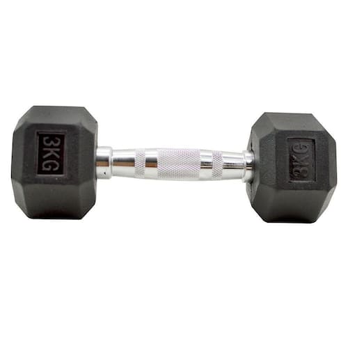 Par de halteres sextavados de 3kg cada resistentes aos impacto. Fabricados em borracha maciça vulcanizada com alto poder de fixação, sua haste metálica é cromada resistente à oxidação. Com recartilhamento para melhor aderência às mãos.