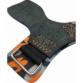 Hand Grip Camuflado laranja tamanho gHand Grip couro Pro Trainer indicado para a proteção da palma da mão evitando a formação de calos e bolhas durante o treino de barra pull-up e demais exercícios nas atividades.Tamanho: gQuantidade de protetores de palma: 1Cor principal: laranjaMateriais: Neoprene