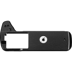 Dedicado à câmera sem espelho FUJIFILM X-T3, o punho de mão de metal MHG-XT3 oferece uma pegada otimizada para facilitar o manuseio e a manipulação da câmera. Ele se conecta à base da câmera e mantém o acesso à bateria e ao compartimento do cartão de memória. Na base da empunhadura, uma saliência de 38 mm de largura apresenta um design em cauda de andorinha que pode atuar como uma placa de liberação rápida com montagens de tripé compatíveis com o tipo Arca. Como alternativa, uma montagem de tripé de 1/4"-20 foi posicionada ao longo do eixo óptico da câmera para beneficiar a criação de fotos panorâmicas.