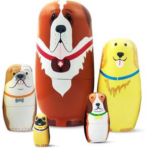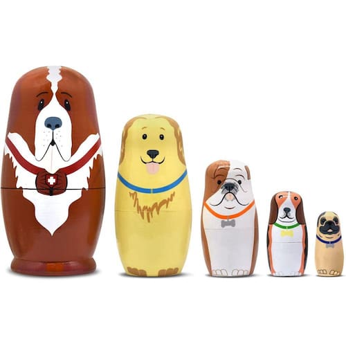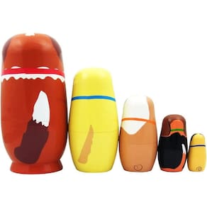 PACOTE DE BONECAS DE NIDIFICAÇÃO: Cada conjunto de bonecas de nidificação russas contém 5 bonecas, empilhadas umas nas outras para aparecerem como uma. A altura da maior boneca é de 5,7 "de altura, a menor boneca é de 1,6 "de altura.