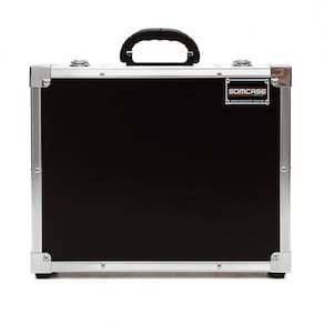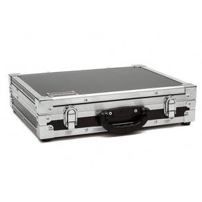 Estrutura de 6mm revestido em laminado tx preta Perfil macho e fêmea de 6mm de alumínio para maior resistência Cantoneira em L nas laterias de 15mm Acabamento interno em espuma de alta densidade com o recorte para cada peça do sistema Fechos cromados Cantos de metal cromado