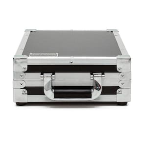 Hard case Mala Estojo para Mesa Yamaha MG10XU Estrutura de 6mm revestido em laminado tx pretaPerfil macho e fêmea de 6mm de alumínio para maior resistênciaCantoneira em L nas laterias de 15mmAcabamento interno em espuma de alta densidade de 10mm2 Fechos tipo borboleta cromadoCantos de metal cromado1 Alça Anatomica Dimensões Internas livres do caseLargura 244 mm Profundidade 294 mm + 80 mm para cabos Altura 71 mm Peso aproximado4,800 kg