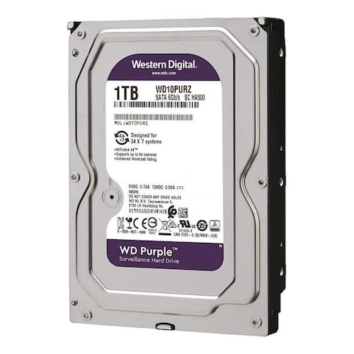 Hard Disk Western Digital Purple 1Tb Wd10Purz Características: - Marca: WD - Modelo: WD10EJRX Especificações: - Capacidade: 1TB - Fator de forma: 3.5 polegadas - Formato avançado - Cumpre as normas RoHS Recursos do produto: - Câmera suportadas: Até 64 - Nímero máximo de compartimentos para unidades suportado: 8 Desempenho: - Cache: 64 MB - Classe de desempenho: Classe de 5400 RPM Taxa de transferência da interface máx : - Buffer para host: 6 Gb/s - Host para/desde drive mantido : 110 MB/s Confiabilidade/integridade dos dados: - Ciclos de carga e descarga: 300.000 - Carga de trabalho nominal anualizada: 180 TB/ano - Erros de leitura irrecuperáveis por bits lidos: 1 em 10 Gerenciamento de energia: - Leitura/Gravação: 3,3 - Ocioso: 2,9 - Standby e dormindo: 0,4 Temperatura °C na base da unidade : - Em operação: 0 a 65 - Fora de operação: -40 a 70 Choque Gs - Funcionamento 2ms, leitura/gravação : 30 - Operacional 2ms, leitura : 65 - Fora de operação 2 ms : 250 Acústica dBA - Ocioso: 21 - Seek média : 22 Conteúdo da embalagem: - HD WD Marca: Não Informado Ean: 1333256584574