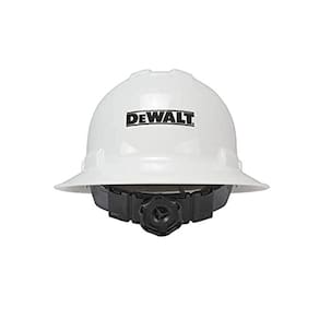DEWALT Capacete rígido com suspensão catraca de 6 pontos de aba completa - Branco - Suspensão de catraca de 6 pontos - Aba completa - Polietileno de alta densidade - ANSI Z89.1-2014 Tipo 1 Classe G & E Padrões