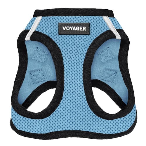 Best Pet Supplies - Malha para todos os climas, reflexiva, sem puxão para cães pequenos, médios e gatos - Seguro com fecho de fecho aderente, fivela, anéis D duplos - Acabamento azul bebê/preto, G