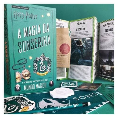 Mostre seu orgulho pela casa da Sonserina com este livro oficial recheado com mais de uma dúzia de itens colecionáveis exclusivos, fatos da Sonserina, curiosidades sobre filmes e segredos dos bastidores. Um presente sob medida para todos os fãs de Harry Potter. Você é um sonserino ambicioso? Deixe o orgulho da sua casa aparecer com esta coleção autêntica de adereços de filmes, reproduções, lembranças e itens colecionáveis dos filmes de Harry Potter. Repleto de surpresas para descobrir, abra o livro de luxo em capa dura para revelar uma flâmula, botão, emblema e muito mais! Inclui arte deslumbrante, bem como curiosidades e momentos de bastidores de sonserinos famosos como Draco Malfoy, Professor Severo Snape e Bellatrix. O presente perfeito para o orgulhoso Sonserino! COLECIONÁVEIS AUTÊNTICOS: Mais de uma dúzia de itens colecionáveis exclusivos e oficiais de Harry Potter, incluindo uma flâmula da Sonserina, emblema em tecido, botão, marcador de página, cartões e muito mais. MOMENTOS DE FILME: Fotografias de cenário e arte conceitual levam você aos bastidores dos momentos favoritos da Sonserina dos filmes de Harry Potter. PRESENTE PERFEITO: Seja você um sonserino orgulhoso ou um fã de todo o mundo mágico, Harry Potter: A Magia da Sonserina é o presente ideal para os fãs de Harry Potter. COLECIONÁVEL: Colete todos os conjuntos Harry Potter para descobrir os itens exclusivos de cada casa de Hogwarts.