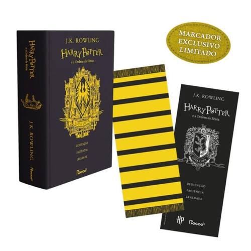 LUFA-LUFA: Dedicação, Paciência, Lealdade. Harry Potter e a Ordem da Fênix personalizado da Casa Lufa-Lufa em capa dura, com pintura trilateral e fitilho. Os livros dessa edição trazem conteúdo editorial extra sobre cada casa, perfil de J.K. Rowling e curiosidades. Harry Potter chegou à adolescência. E, junto com as transformações desta época tão importante, vive seus dias mais sombrios na escola de magia de Hogwarts. Anunciado pela própria J.K. Rowling, como o livro que inaugura a fase dark do personagem, Harry Potter e a Ordem da Fênix é o quinto volume da saga do jovem bruxo e traz a mais longa das aventuras do aprendiz de feiticeiro. A autora chegou a revelar que chorou ao escrever a morte de um dos personagens mais ligados a Harry Potter no livro, cujo título faz menção a uma sociedade secreta envolvendo parte dos professores da Escola de Magia. Aos 15 anos, Harry Potter continua sofrendo a rejeição dos Dursdley, sua estranhíssima família no mundo dos “trouxas”, ou seja, todos os que não são bruxos. Também continua contando com Rony Weasley e Hermione Granger, seus melhores amigos em Hogwarts, para levar adiante suas investigações e aventuras, ao mesmo tempo que começa a sentir e descobrir coisas novas, como o primeiro amor e a sexualidade. Nos volumes anteriores, J.K. Rowling mostrou como Harry foi transformado em celebridade no mundo da magia por ter derrotado, ainda bebê, Voldemort, o todo-poderoso bruxo das trevas que assassinou seus pais. Neste quinto livro da saga, o protagonista, numa crise típica da adolescência, tem ataques de mau humor com a perseguição da imprensa, que o segue por todos os lugares e chega a inventar declarações que nunca deu. Harry vai enfrentar as investidas de Voldemort sem a proteção de Dumbledore, já que o diretor de Hogwarts é afastado da escola. E vai ser sem a ajuda de seu protetor que o jovem herói enfrentará descobertas sobre a personalidade controversa de seu pai, Tiago Potter, e a já anunciada morte de alguém muito próximo. USE COM ORGULHO AS CORES DA SUA CASA. Edição limitada de colecionador.