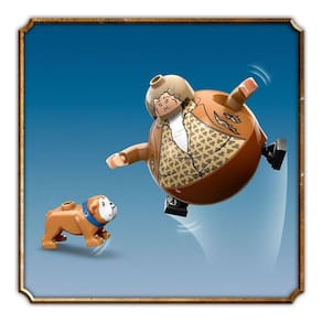 5 minifiguras LEGO Harry Potter tm - Marge Dursley, Vernon Dursley, Petúnia Dursley, Dudley Dursley, Harry Potter tm , além de uma figura inflável da Tia Marge e uma figura do cachorro Ripper