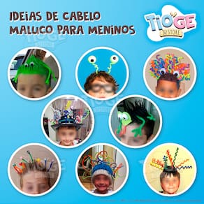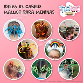 O Dia do Cabelo Maluco ou Penteado Maluco já virou tradição nas escolas e, neste dia, as crianças são encorajadas a expressar sua criatividade através de penteados malucos. Com as Hastes Flexíveis de Pelúcia essa atividade ficará ainda mais fácil e divertida, pois flexibilidade das hastes permite que crie uma infinidade de formas, objetos, animais e personagens. Também podem ser utilizadas como auxiliar na alfabetização, pois é possível criar letras e números com facilidade, tornando o aprendizado mais lúdico. Elas podem ser cortadas com tesoura comum e coladas com cola escolar. O pacote é composto por 10 peças com aproximadamente 30cm de comprimento e 6mm de espessura. São enviadas 2 unidades de cada cor: Preto, Cinza, Branco, Bege e Marrom.