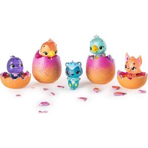 Conheça a 4ª temporada hatchimals CollEGGtibles: elas brilham quando você as coloca em uma luz! Nesta temporada, há mais de 80 novos personagens para chocar e descobrir! Unbox este conjunto e você vai encontrar um hatchimals fora de ovo e quatro Hatchimals in-egg! Use seu amor e cuidado para aquecer cada ovo até que o coração que muda de cor se transforme de roxo para rosa. Pressione para quebrar suavemente a concha e conheça seu novo amigo! Agora você pode chocar brilhante! Basta colocar qualquer luz abaixo de seu Hatchimal para vê-los brilhar! Com corpos translúcidos e rostos adoráveis, esses Hatchimals também vêm em um dos cinco acabamentos possíveis! Chocar para descobrir amigos metálicos, brilhantes no escuro, brilhantes, peludos ou brilhantes! Você pode até combinar seus novos amigos com os playsets hatchy home, para mostrar como eles brilham! Hatch mágico novos amigos com o Hatchimals CollEGGtibles 4-Pack + Bônus!