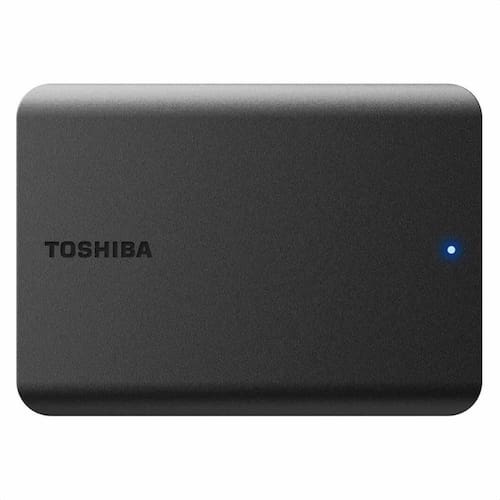 HD Externo Toshiba Canvio Basics com capacidade de 1TB, interface USB 3.0 e USB 2.0, e compatibilidade com Windows e macOS.Capacidade