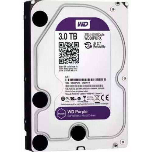 Hd Purple 3tb Sata 6 Gb/S 5400rpm 64mb Wd30purz Modelo: WD30PURZInformações do produto:Os HDs WD Purple foram desenvolvidos especialmente para uso em equipamentos de segurança eletrônica. Mais robustos, seguros e confiáveis, possuem a garantia de qualidade. Sua tecnologia exclusiva é compatível com as principais marcas de CFTV.Características:- Disco rígido especial para segurança eletrônica;- Operação 24 horas por dia 7 dias por semana;- Estabilidade na gravação de dados;- Velocidade de disco controlada;- Dissipação de calor otimizada;- Baixo consumo de energia e nível de ruído;- Compatível com as principais marcas de CFTV;- 3 anos de garantia.Especificações:- Capacidade formatada: 1 TB;- Fator de forma: 3,5 polegadas;- Formatação avançada: Sim;- Em conformidade com RoHS2: Sim.Desempenho:- Velocidade de transferência dos dados máx. ;- Buffer para sistema anfitrião: 6Gb/s;- Anfitrião de/para unidade sustentada : 145 MB/s;- Cache MB : 64;- Velocidade de rotação RPM : IntelliPower;- Fiabilidade/Integridade dos dados;- Ciclos de carga/descarga: 300.000;- Garantia limitada anos : 3;- Gestão de energia;- Média de requisitos de energia W ;- Leitura/escrita: 4,4;- Inactividade: 4,1;- Suspensão e pausa: 0,4.Especificações ambientais:- Temperatura C ;- Em funcionamento: 0 a 65;- Não em funcionamento: -40 a 70;- Choque Gs ;- Em funcionamento 2 ms, leitura/escrita : 30;- Em funcionamento 2 ms, leitura : 65;- Não em funcionamento 2 ms : 350;- Acústica dBA ;- Inactividade: 23;- Procura média : 24.Dimensões físicas:- Peso: 0,64 Kg;- Largura: 11 cm;- Altura: 3 cm;- Profundidade: 15 cm. Mais informações:Encontre aqui na Rotashop a maior variedade em Informática HD.
