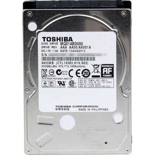 Características:marca: ToshibaModelo: MQ01ABD050Especificações- Plataforma: Disco Rígido Interno HDD - Capacidade: 500GB- Interface: SATA 3.0gb/s- Formato: 2,5 polegadas - Ultra Slim 7mmDesempenho- RPM: 5400- Cache: 8 MB- Latência Média: 5.55ms