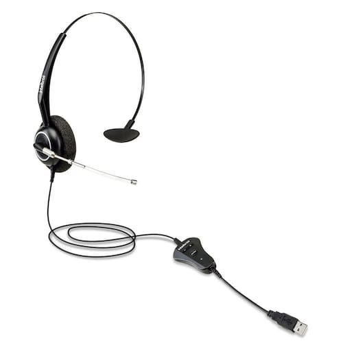 Headset mono USB Plug E Play, ideal para chamadas VoIP, conferências e softwares de contact centers. Design leve e ergonômico com cordão com controle de volume e tecla Mudo. Tubo de voz removível em conformidade com a NR 17. Tiara ajustável de aço revestida em PVC, protetor auricular removível e microfone em tubo de plástico rígido, removível e reversível. Cabo de 2,4 metros com controle de áudio e LEDs de indicação de status.Agenda telefônica