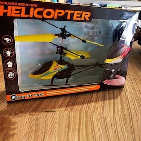 Ligue o helicoptero e ele vai voar depois de 3 segundos. Coloque sua mão abaixo do helicoptero e ele vai subir voando.