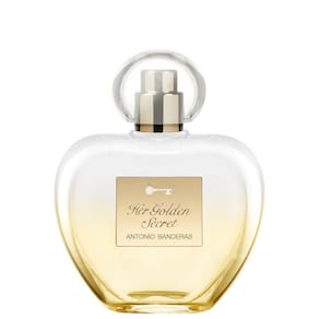 Her Golden Secret, de Banderas, possui notas de saída que destacam sua feminilidade com uma nota de coração floral que mescla delicadamente gardênia, flor de laranja e groselha preta. No fundo, as madeiras, o patchuli e a baunilha oferecem o caráter único de uma sedutora irresistível.