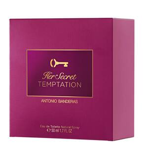 Her Secret Temptation, de Banderas, é um perfume feminino que transmite a elegância refinada de paixões arrebatadoras em notas que combinam o máximo de feminilidade e mistério. O ar cítrico e luminoso do Néroli capta o interesse assim como os passos da mulher que usa a essência. As Pétalas de Rosas da Bulgária recebem o amadeirado do Cedro, dupla que forma uma composição intensamente sofisticada.