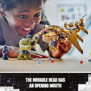 Heróis Marvel Vingadores vs. Leviatã Lego 76290 O conjunto colecionável de Super-herói LEGO Marvel Vingadores vs. Leviatã 76290 recria a cena da batalha final de Marvel: Os Vingadores da Marvel Studios. Este modelo LEGO Marvel construível para crianças maiores de 7 anos apresenta um elenco icônico de personagens, além de uma série de autênticos recursos e funções. O conjunto inclui 4 minifiguras: o Capitão América com seu escudo, a Viúva Negra com um disparador de pinos, o Loki com sua capa e capacete e um guerreiro Chitauri com uma Ferramenta de aplicação de laser, além de uma figura grande do Hulk. A Leviatã para construir conta com 6 nadadeiras móveis, uma boca que abre, uma cabeça que vira para os lados e 2 disparadores de pinos. A Leviatã inclui expositores transparentes que permite que as minifiguras voem durante as brincadeiras e tornam a exposição ainda mais impressionante. Para mais diversão digital, o aplicativo LEGO Builder intuitivo permite que crianças ampliem, girem modelos em 3D, salvem conjuntos e acompanhem o progresso delas à medida que constroem. Marca: Não Informado Ean: 673419390972