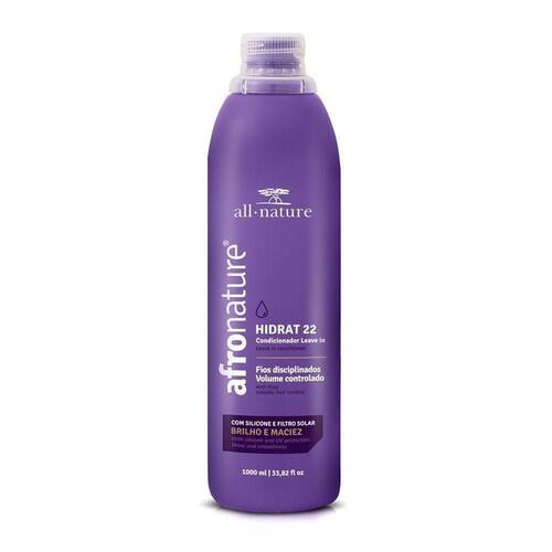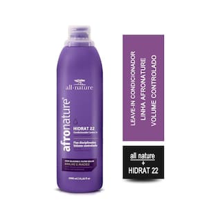 O Hidrat 22 Afro Nature - Linha Profissional da All Nature -------Foi formulada com muito carinho para cuidar de forma profunda os cabelos cacheados, crespos e ondulados, principalmente os que passaram por processos quimicos e que necessitam de cuidados mais potentes. Ele forma um filme reticular sobre o cabelo, controlando o volume e deixando os fios disciplinados. O Filtro Solar protege o cabelo da ação da luz UV e o Silicone possui função amino, que é um condicionador específico para ficar sobre o fio mesmo após a lavagem. Os Oligossacarídeos de Trigo dão disciplina e formam um filme reticular, doando brilho e maciez, e evitando que o cabelo arrepie mesmo em alta umidade relativa do ar. Evita a ação do tempo, controlando o volume e o aspecto arrepiado, promovendo brilho e maciez ao cabelo.Indicação: Sem enxágue. Protege e hidrata todos os tipos de cabelos.Conteúdo: 1000mlPh entre 4,0 e 5,5Principal componente: Silicone, Filtro Solar, Proteínas e Oligossacarídeos de Trigo.Rendimento: Alto RendimentoObservações: Cabelos que foram relaxados não deveriam sair do salão sem a proteção de Hidrat 22. Para ação de diminuição de volume e definição de cachos, deve ser usado em conjunto com o Hidratante Super.--------------Você Receberá:01 Litro de Hidrat 22 Afro Nature