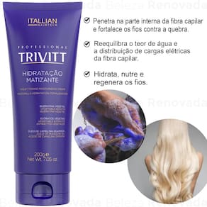 Misture 1 medida do produto com 2 medidas de Hidratação Intensiva Trivitt. Aplique sobre os cabelos limpos e úmidos, do comprimento às pontas, massageando suavemente mecha a mecha. Deixe agir até atingir o tom desejado e enxágue abundantemente.