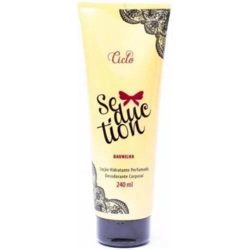 Hidratante Ciclo Seduction 240ml Seduction Loção Hidratante Desodorante Corporal 240ml Com uma fragrância de arrancar suspiros, Seduction loção hidratante hidrata e cuida da sua pele, deixando um delicioso e sedutor perfume de Baunilha/Vanilla. O segredo da durabilidade da fragrância da loção hidratante corporal Seduction está na superconcentração de essência da fórmula, garantindo pele macia e perfumada por mais tempo. A Fragrância: Seduction tem um delicioso cheirinho de Baunilha Notas de Saída: Abacaxi, Orquídea Notas de Corpo: Íris, Jasmim, Guaiaco, Tuberosa Notas de Fundo: Musk, Fava Tonka, Baunilha, Caramelo Dica: use o hidratante antes do seu perfume. A pele bem hidratada tende a fixar melhor a fragrância do perfumes, e assim o cheirinho vai durar por mais tempo. Indicação: Indicado para hidratar e perfumar a pele de todo o corpo. Modo de Usar: Aplicar na pele em movimentos circulares, espalhando até completa absorção. Uso diário. Ean: 7898410310771