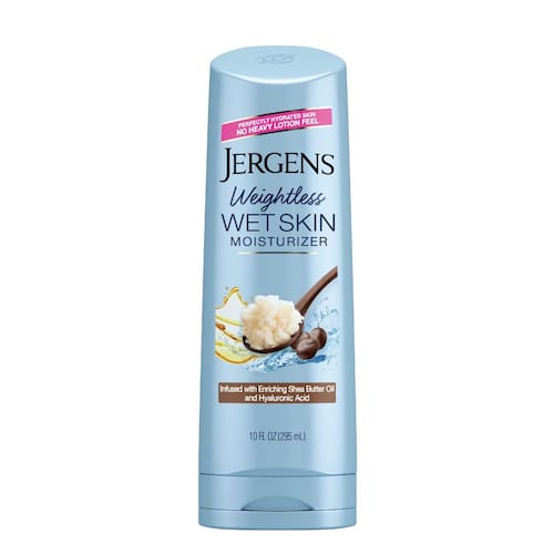 Hidratante corporal Jergens para pele úmida com óleo de manteiga de karité, loção pura de manteiga de karité no chuveiro, hidratante para pele seca, de rápida absorção, não pegajoso, 10 onças, testado dermatologicamente —