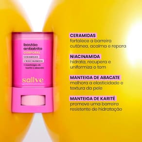 Bastão Antiatrito Corporal Sallve – Proteção e Conforto O Bastão Antiatrito Corporal Sallve é a solução ideal para evitar desconforto e irritações causadas pelo atrito na pele. Sua fórmula contém cera Marca: Não Informado