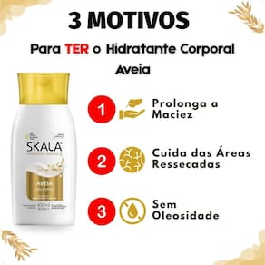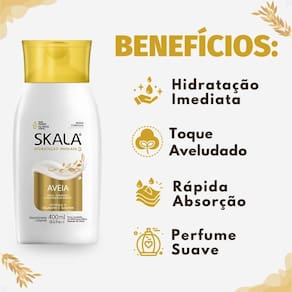 O Hidratante Corporal Skala Hidratação Imediata Aveia 400ml é a solução perfeita para conquistar uma pele intensamente nutrida, macia e com um toque aveludado. Sinta a transformação da sua pele, que irradia saúde e bem-estar a cada aplicação. Desenvolvido para proporcionar hidratação profunda e duradoura, este hidratante é ideal para quem busca praticidade e resultados visíveis, especialmente para peles secas e sensíveis.