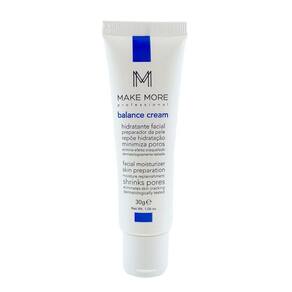 O Balance Cream da Make More é um hidratante facial livre de óleo mineral. Indicado para uso diário na sua rotina de cuidados com a pele e fundamental na pré-maquiagem. Hidrata, Aumenta o Viço da Pele, Minimiza os Poros e reduz a probabilidade de efeito craquelado na pele. Possui em sua formulação ácido hialurônico, silício ôrganico, e lipo nutrientes que mantém o equilíbrio hídrico, hidrata e prepara a pele, além de proteger e prevenir contra as agressões diárias do lifestyle urbano.