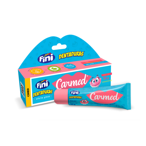 Hidratante labial de uso diário incolor com aroma de Carmed Fini Dentaduras, com alto poder de hidratação, protege contra o ressecamento, deixando os lábios macios e saudáveis. Sem parabenos e conservantes; Não testado em animais.