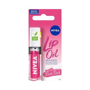 O que é?O NIVEA Lip Oil Brilho Nutritivo Pink Rock 5,5ml é o hidratante labial certo para quem busca aquele efeito gloss com um lindo acabamento brilhoso sem deixar sensação oleosa na boca, e ainda dá a sensação de lábios volumosos.Para que serve?Potencializa a beleza dos seus lábios com hidratação instantânea, um brilho natural que combina com todos os tipos de tom de pele, e ainda tem uma composição gentil com o planeta e com seus lábios: ingredientes naturais, fórmula vegana, sem testes em animais. O NIVEA Lip Oil pode ser combinado com um esfoliante para destacar ainda mais seus lábios de forma natural ou com uma base de cor forte.Benefícios principais:- Fórmula Vegana- Com Óleo de Jojoba Orgânico- Hidratação instantânea e duradoura- Sensação não pegajosa- Brilho Nutritivo- Sem ingredientes de origem animal.