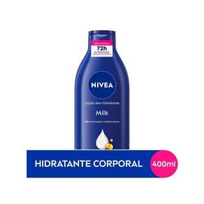 NIVEA Loção Deo-Hidratante Milk é um hidratante corporal que garante um cuidado intenso, com 72h de hidratação para uma pele mais saudável a cada uso. Para que serve? Enriquecida com ácido hialurônico puro, óleo de amêndoas e sérum de nutrição profunda, a loção deo-hidratante proporciona uma hidratação profunda para a pele seca a extrasseca. Benefícios e diferenciais: Hidratação profunda por 72 horas Cuidado intenso Nutrição profunda Não oleoso e de rápida absorção Dermatologicamente testado.Aviso:Uso externo. Não é indicado para uso no rosto. Em caso de irritação, suspenda o uso e procure orientação médica. Manter em local seco e arejado, ao abrigo de luz e fora do alcance de crianças.
