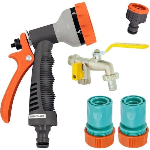 ITENS INCLUSOS 01 Torneira de Metal 1/2 e 3/4 01 Esguicho Hidropistola 6 Jatos Mangueira Jardim Para Engate Rápido 02 Engates Rápido 01 Bico Com Engate Rápido Para Torneiras de 3/4 + Adaptador para Torneiras de 1/2 Marca: Não Informado