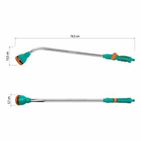 Produto fabricado com matéria-prima de alta qualidade proporcionando uma irrigação precisa e confiável. 10 tipos de jato dágua. Extensão em alumínio polido, com 39 cm. Cabo anatômico com revestimento emborrachado. Cabo longo, ideal para irrigação de folhagens densas e vasos de flores em altura. A hidropistola é conectada em mangueiras de 1/2, 5/8 e 3/4 através de sistema de engate rápido. Possui sistema de bloqueio da água. Regulagem da vazão dágua acessível na própria mão. Sistema intercambiável que se adapta a todo o sistema de irrigação.