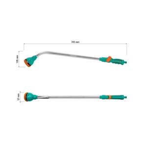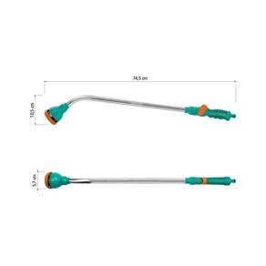 - Produto fabricado com matéria-prima de alta qualidade proporcionando uma irrigação precisa e confiável. - 10 tipos de jato d'água. - Extensão em alumínio polido, com 39 cm. - Cabo anatômico com revestimento emborrachado. - Cabo longo, ideal para irrigação de folhagens densas e vasos de flores em altura. - A hidropistola é conectada em mangueiras de 1/2, 5/8 e 3/4 através de sistema de engate rápido. - Possui sistema de bloqueio da água. - Regulagem da vazão d'água acessível na própria mão. - Sistema intercambiável que se adapta a todo o sistema de irrigação.