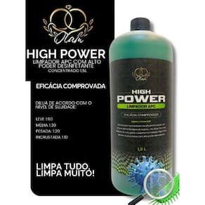 O HIGH POWER da Olam é um limpador multiuso concentrado de alta performance, desenvolvido para enfrentar os desafios mais exigentes da limpeza automotiva e profissional. Sua fórmula avançada remove com facilidade gordura, manchas, resíduos de cola, graxa e sujeiras incrustadas, garantindo resultados superiores em diversas superfícies.