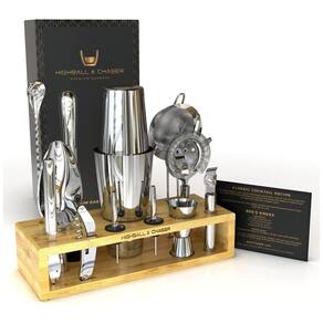 CONJUNTO DE BARRAS MAIS COMPLETO DISPONÍVEL Não se contente com um kit de bn que está incompleto. O nosso inclui uma faca de barra para cortar limões e limas, um zester de limão com uma faca de canal recém projetada para criar facilmente torções de limão e lima e uma peneira de malha fina para manter toda a espuma e polpa fora dessas belas bebidas diretas. MELHORES ACESSÓRIOS Nosso Muddler é quase 2 centímetros mais comprido, então você não vai arranhar os nós dos dedos. Uma concha para obter gelo picado em vez de pinças. Nosso jigger é realmente 59 ml. de um lado e 30 ml. ONITO SUPORTE DE BAMBU O kit de coqueteleira vem em um prático, belo e extremamente robusto suporte de bambu. O suporte é feito de bambu sólido com mais de . espesso e tem um belo acabamento transparente que é totalmente para alimentos. O suporte é de largura de . QUALIDADE SUPERIOR Todas as ferramentas de barra são feitas de aço inoxidável polido 304 ou 403 polido anti ferrugem. Todas as ferramentas são adequadas para alimentos e lava louças. Vem com uma bela coqueteleira Boston à prova de vazamentos. Todas as soldas são fortes e bonitas. Substituiremos qualquer peça que não seja do seu agrado