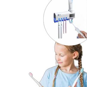 Características: Elimina até 95% das bactérias Suporte dispenser automático de pasta de dente Sistema de esterilização uv Placa de carregamento solar Sensor infravermelho inteligente Acomoda até 4 escovas de dente