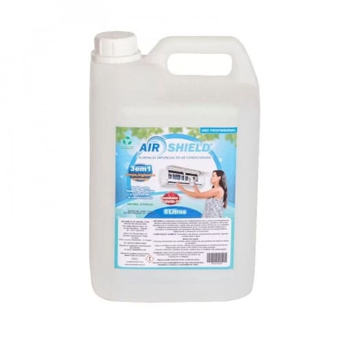 O Higienizador de Ar Condicionado Air Shield 5 Litros é um produto para limpeza do seu condicionador de ar, de utilização simples e prática. Preserva a camada de proteção da serpentina, ajudando a prolongar a vida útil do aparelho e proporciona economia de energia. Biodegradável não contém ácido, não mancha, atóxico, proporciona bem-estar para a saúde dos consumidores