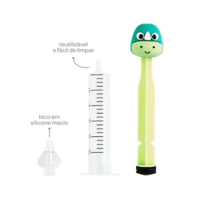 Modo de usar: Adicione 5 a 10ml de soro fisiológico em temperatura ambiente na seringa. Com o bebê sentado e o tronco ligeiramente inclinado para frente, introduza suavemente a ponteira de silicone na narina e aplique o liquido, que entra por um lado e escoa pelo outro. Agora seu bebê pode respirar aliviado.