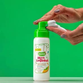 Aplique uma pequena quantidade da espuma, Mãos Limpinhas, na palma da mão, esfregue bem e deixe secar. Não é necessário enxaguar, use a qualquer hora, em qualquer lugar.