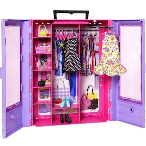 O novo Closet da Barbieinclui a boneca Barbie, roupas e acessórios e tem estilo por dentro e por fora!OCloset de Luxo da Barbie com Bonecanão é apenas projetado para ser super portátil, ele também inclui uma boneca Barbie, roupas e acessórios para criar looks diferentes e muitas histórias. Um mundo de possibilidades!Decorado com o estilo exclusivo da Barbie, o armárioroxo édecorado com portas duplasclaras para um vislumbre do guarda-roupa da boneca Barbie! O espaço deprateleira armazena e exibe acessórios, e um rack desdobrável mantém a moda para a diversão!A boneca Barbieusa vestido listrado e sapatos e vem com roupas e acessórios modernos.Dois vestidos são perfeitos para o dia ou para a noite com estampas modernas e cores populares junto com dois pares de sapatos, dois colares e duas bolsas!Uma alça de transporte facilita guardar ou levar para viagem.Vantagens * O armário portátil está pronto para viajar, em qualquer lugar, para qualquer ocasião.* Inclui seis cabides para pendurar várias roupinhas da Barbie.* Um rack dobrável é utilizado para pendurar roupas e é útil para mudanças de estilo de vestir.* A boneca Barbieusa um vestido listrado e tem dois vestidos adicionais para trocar de roupa.* Inclui três pares de sapatos, dois colares e duas bolsas para criar looks diferentes em um instante!EspecificaçõesConteúdo da embalagem: Closet, 1 boneca Barbie em moda e sapatos mais 2 vestidos, 2 pares de sapatos, 2 colares, 2 bolsas e 6 cabides.Código de barras: 194735089550Referência: HJL66Idade recomendada: A partir de 3 anos de idade.Aviso importante: As cores podem variar entre as imagens e produto. Imagens meramente ilustrativas.