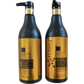 O Kit sos Loiras é elaborado com nanotecnologia, confere reconstrução com efeito teia, vitalidade natural e fortifica cabelos mechados. Com a presença do colágeno hidrolisado e da queratina em sua fórmula, promove o preenchimento das porosidades, alinhamento e elasticidade dos fios, além de proteger internamente e externamente contra quebra, emborrachamento e pontas duplas. Modo de Usar: Lave os cabelos com o Shampoo Reconstrutor sos Loiras massageando os cabelos suavemente e enxague, em seguida aplique uma pequena quantidade da Máscara Reconstrutora sos Loiras sobre os cabelos úmidos enluvando mecha por mecha, deixe agir por 15 a 20 minutos e enxágue e finalize como desejar. O Kit Contém: 01 Shampoo sos Loiras 750ml 01 Máscara sos Loiras 750gr Marca: Não Informado