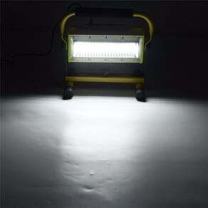 Marca: lorben Material: alumínio e plástico abs Cor: amarelo Tipo de led: smd Iluminação: 2400 lúmens Potência: 100w Tempo de recarga inicial da bateria: de 8 a 10 horas Tempo de autonomia: 40 minutos (luz na intensidade máxima) a 3 horas (luz na intensidade mínima)