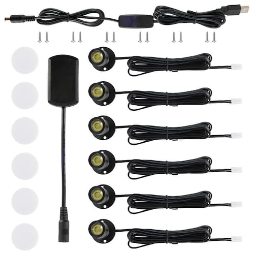 Holofotes LED DEDC 6 unidades 1W 3000K com dimmer embaixo do gabinete
