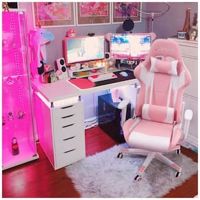 Material selecionado espuma modeladora de alta densidade, mais confortável, resiliência de elasticidade e vida útil. Estrutura de aço com 1, de espessura, mais robusta e estável. Couro Pu, amigo da pele e resistente ao desgaste. Configuração atualizada elevador a gás Classe 3, durável, confiável e suporta até 136 kg. Rodízios de borracha, rodando silenciosamente e testados por 1000 milhas rodando. Multifunção rotação de 360 graus e rodas multi direção, capacidade de carga capacidade máxima de peso de 136 kg. Função reclinar. Entre 90 a 180 graus. Função de balanço a cadeira pode balançar para frente e para trás quando você ajusta o botão abaixo do assento. Dimensão Tamanho da parte traseira 57 e . Tamanho do assento 36 e . Altura ajustável do assento 43 a . Uso amplo esta cadeira de jogos é adequada para você jogar jogos de computador, assistir a programas, fazer o trabalho e descansar. Isso tornará seu espaço mais moderno e elegante Marca: Não Informado