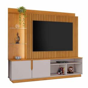 Luminária em Led Painel Ripado Prateleiras em vidro temperado Portas usinadas com dobradiças de pressão Espaço TV:1420mmx1210mm(LxA) Acompanha suporte