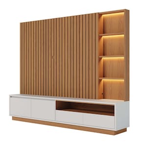 O Home Theater Cancún é a combinação perfeita de design contemporâneo e funcionalidade para o seu espaço de entretenimento. Com linhas retas e iluminação quente, o móvel destaca-se pelo painel superior com ripas largas, proporcionando uma sensação de volumetria. Adequado para TVs de até 82 polegadas, o home possui nichos decorativos com led, nicho inferior para aparelhos, duas gavetas com corrediças telescópicas e dois gavetões laterais, oferecendo uma solução completa para armazenamento.